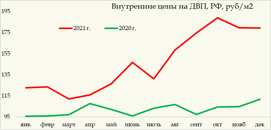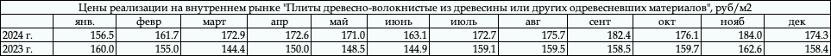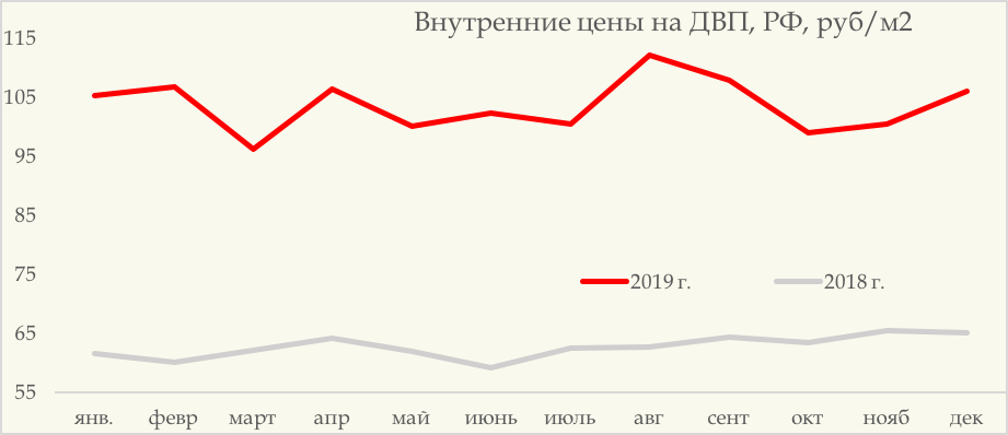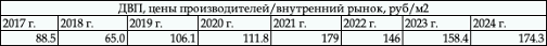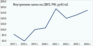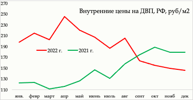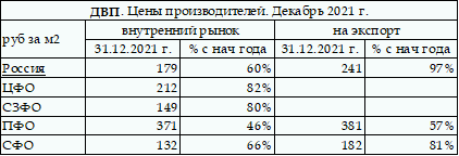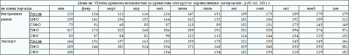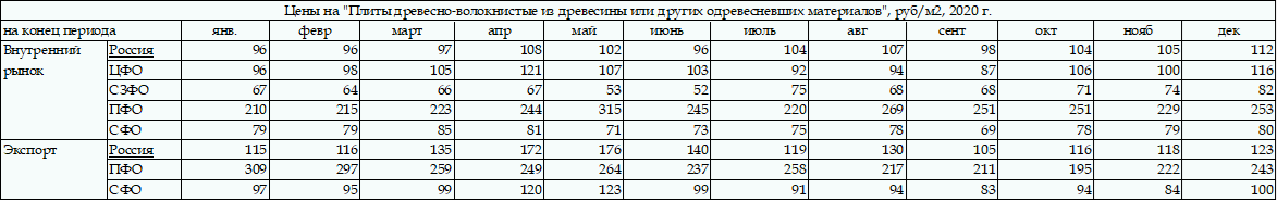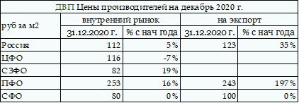 спад 27%. Экспортные цены на ДВП в среднем по России на конец