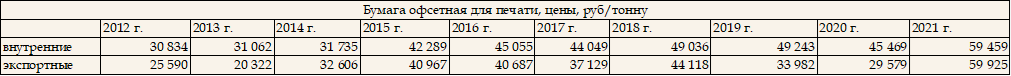 ----- ИНФО: ОФСЕТНАЯ БУМАГА. ЦЕНЫ - Динамика
