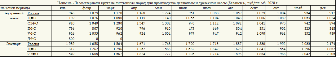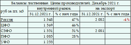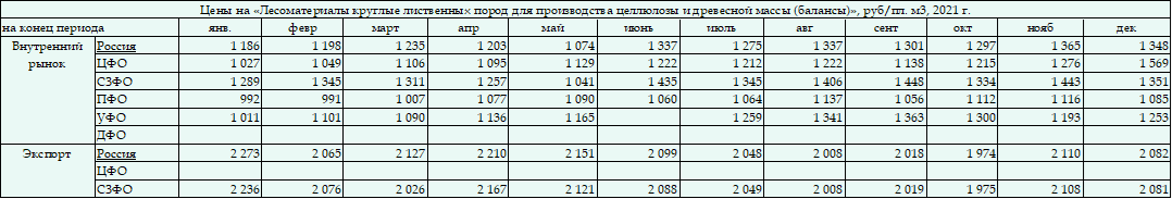 ----- ИНФО: БАЛАНСЫ ЛИСТВЕННЫЕ. ЦЕНЫ - отчетный год