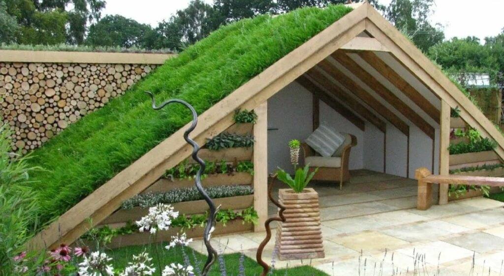 Есть и более смелое решение — живая кровля, когда в крышу интегрируют растения. Она сложна в исполнении, но подарит удивительный эффект: летом под ней прохладно, а сама беседка легко станет частью ландшафта.
